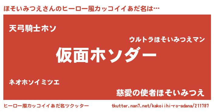| 欧米人風あだ名 | 『ほそいみつえ・ステッグマイヤー』 |