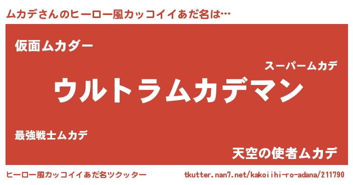 | 男性向けラノベタイトル風あだ名 | 『ムカデスレイヤー』 |