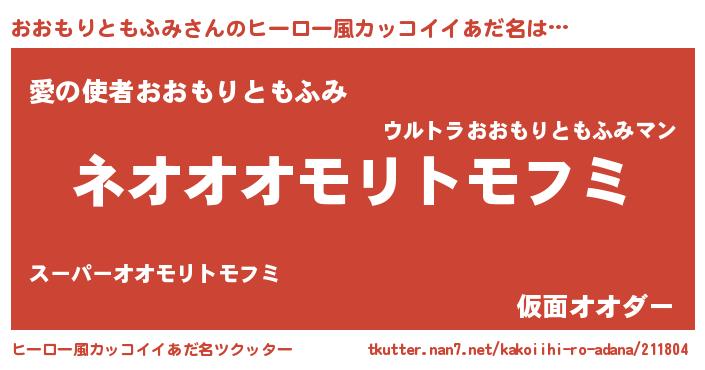 | 男性向けラノベタイトル風あだ名 | 『誰もが恐れるあのおおもりともふみが、ぼくの専属メイドになるようです。』 |