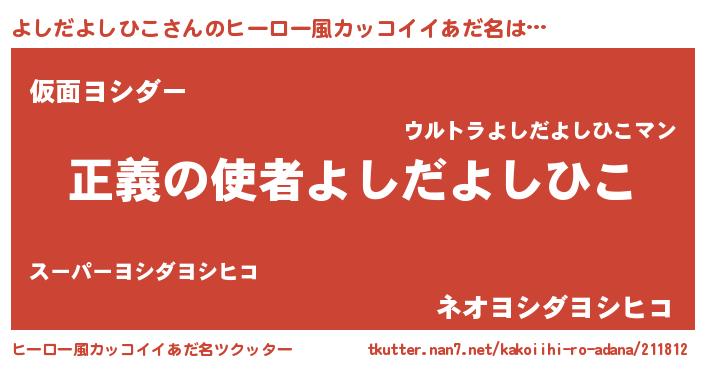 | ヘコむあだ名 | 『よしだよしひこ(笑)』『なまこ酢』 |