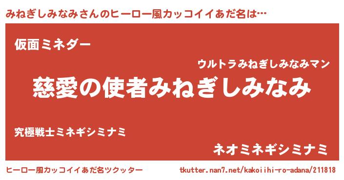 | 伝説のあだ名 | 『救世主となる占い師みねぎしみなみ』 |