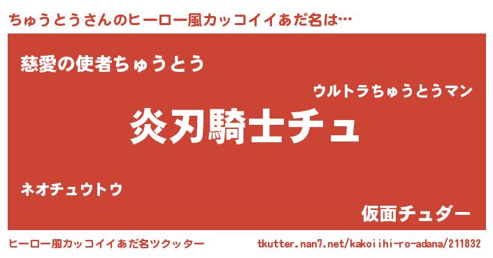 | 女子向けラノベタイトル風あだ名 | 『ちゅうとう様がみてる』 |