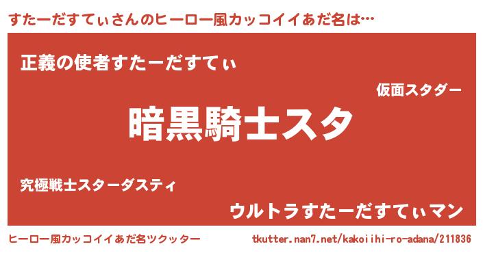 | 意味不明あだ名 | 『とにかく怪しいすたーだすてぃ』 |