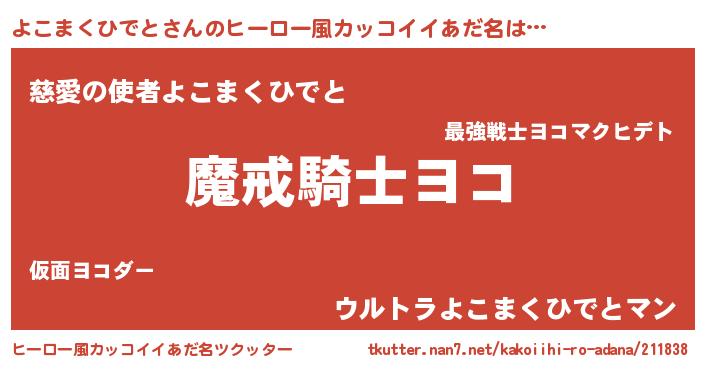 | 胡散臭い通販商品みたいなあだ名 | 『伝統あるサプリメント…その名も「よこまくひでと」』 |