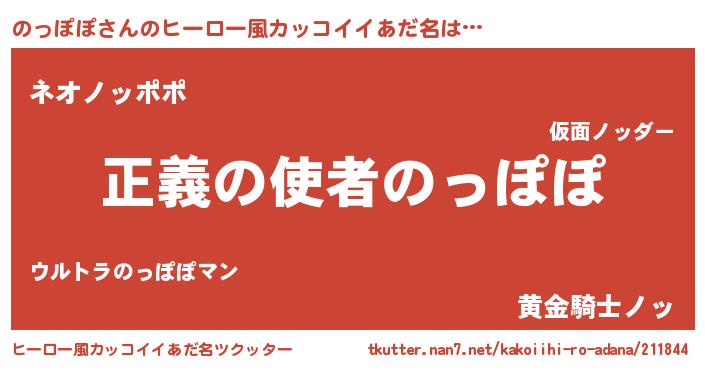 | 男性向けラノベタイトル風あだ名 | 『おまえをオタクにしてやるから、俺をのっぽぽにしてくれ! 』 |
