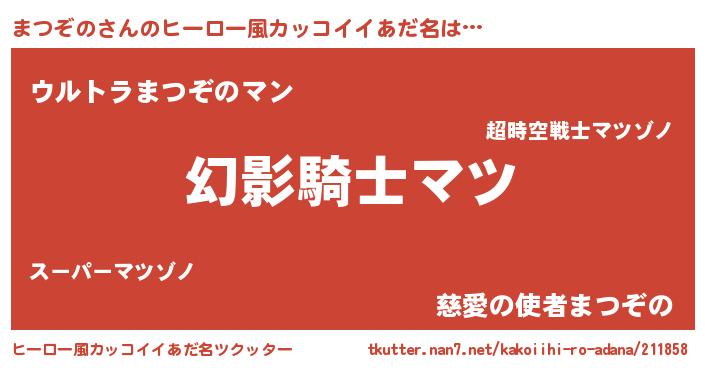 | 男性向けラノベタイトル風あだ名 | 『まつぞのに滅ぼされるだけの簡単なお仕事です』 |