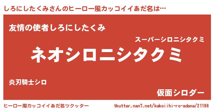 | ヘコむあだ名 | 『しろにしたくみ(遠い目)』『しろもー』 |