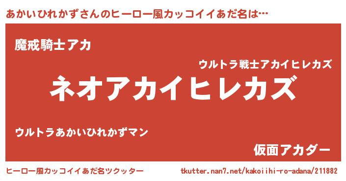 | 男性向けラノベタイトル風あだ名 | 『はたらくあかいひれかずさま!』 |