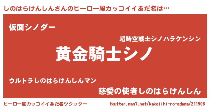 | 男性向けラノベタイトル風あだ名 | 『緋弾のシノハラケンシン』 |