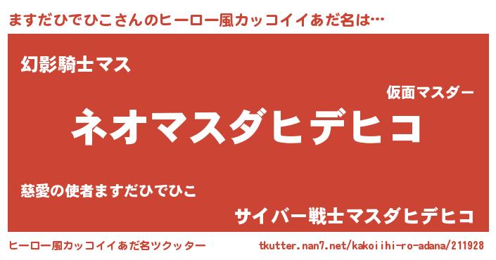 ますだひでひこさんのヒーロー風カッコイイあだ名をツクッター!