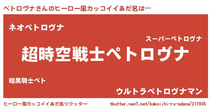| 女子向けラノベタイトル風あだ名 | 『ペトロヴナなんてお断りですっ。』 |