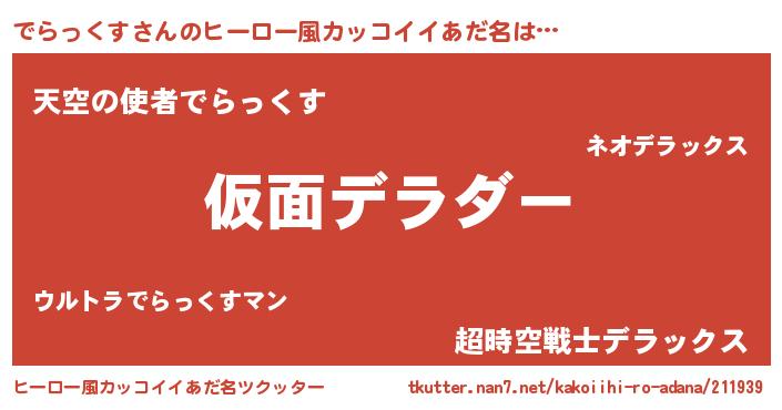 | 意味不明あだ名 | 『住所不定無職でらっくす(13歳)』 |