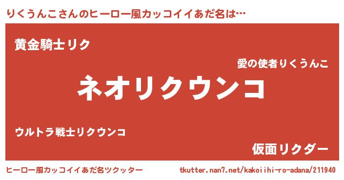 りくうんこさんのヒーロー風カッコイイあだ名をツクッター!