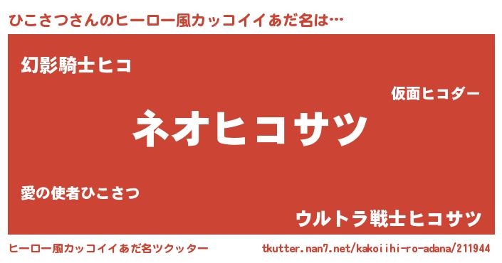 | 男性向けラノベタイトル風あだ名 | 『ひこさつという概念が存在しない退屈な世界 』 |