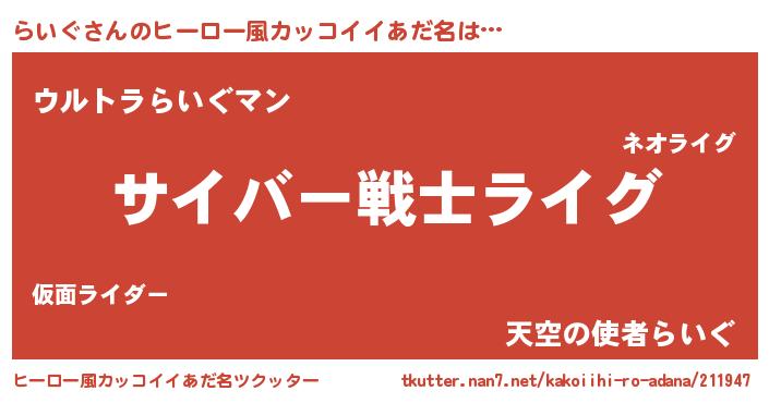 | 恥ずかしいあだ名 | 『ライグデラックス』『らいっちょ』 |
