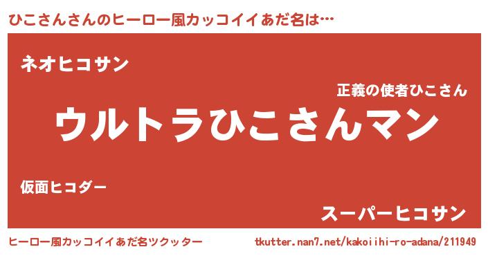 | 男性向けラノベタイトル風あだ名 | 『ヒコサンスレイヤー』『ひこさんの憂鬱』 |