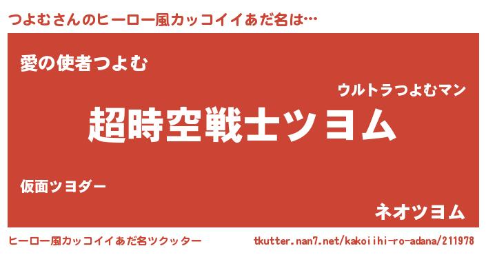 | 女子向けラノベタイトル風あだ名 | 『つよむなんてお断りですっ。』 |