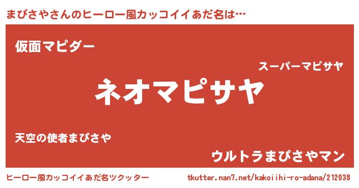 | 男性向けラノベタイトル風あだ名 | 『まぴさやという概念が存在しない退屈な世界 』 |