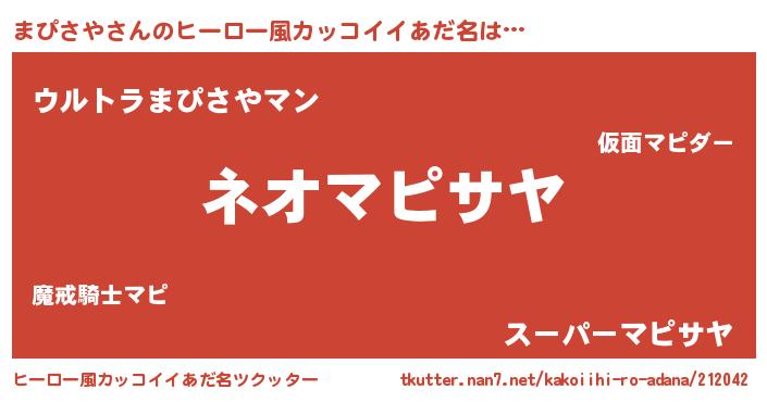 | 胡散臭い通販商品みたいなあだ名 | 『来世でも幸せになれる健康食品…その名も「まぴさや」』 |