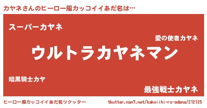 | 男性向けラノベタイトル風あだ名 | 『カヤネスレイヤー』 |