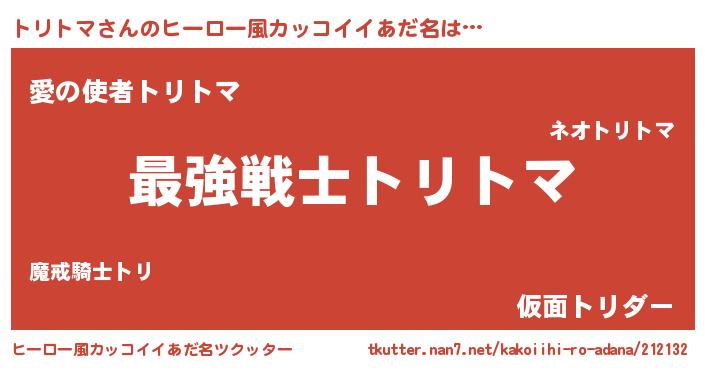 | ヘコむあだ名 | 『トリトマ(爆)』『トリお』『豆乳』 |