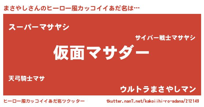 | 男性向けラノベタイトル風あだ名 | 『まさやし~年齢イコール彼女いない歴の魔法使い~』 |
