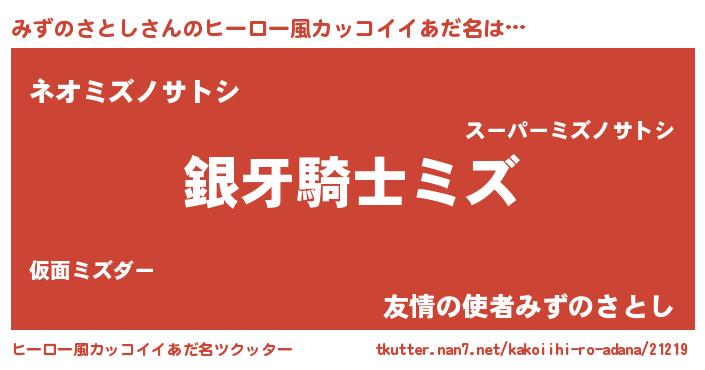 | 胡散臭い通販商品みたいなあだ名 | 『伝統あるサプリメント…その名も「みずのさとし」』 |