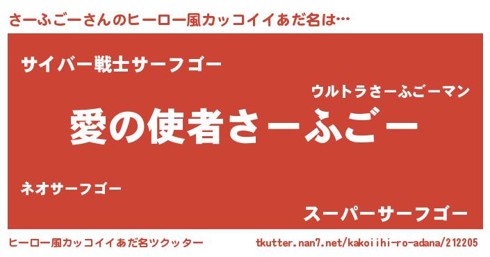 | 女子向けラノベタイトル風あだ名 | 『さーふごー恋絵巻』『闇のさーふごー』 |
