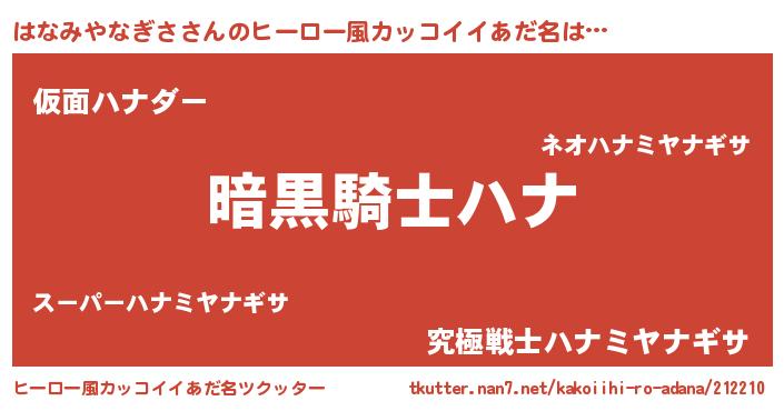 | ポケモン風あだ名 | 『ヒハナミヤナギサ』『ハーナイ』 |