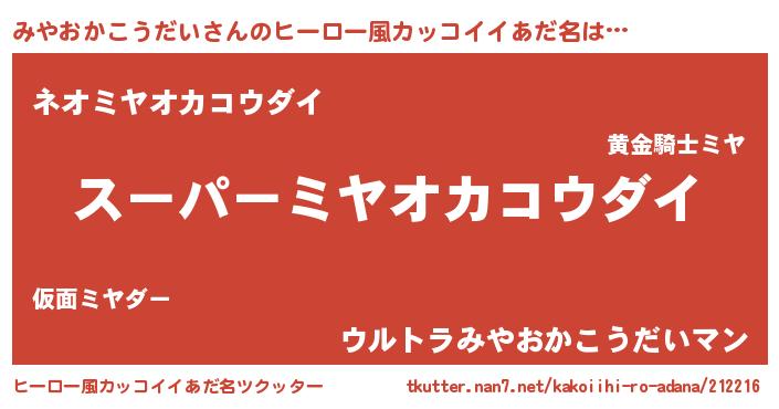 | ヘコむあだ名 | 『みやもー』『みやおかこうだい(爆)』 |