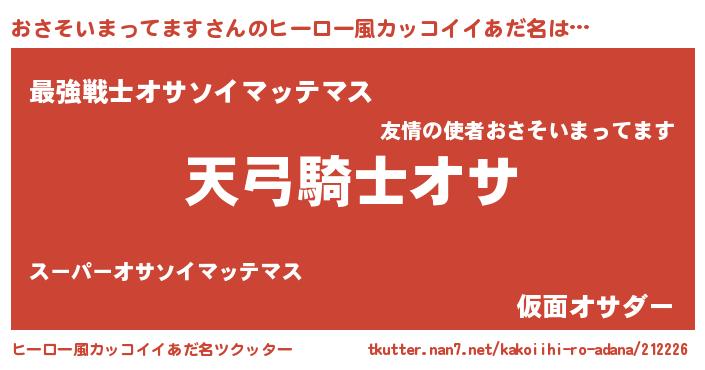 | 女子向けラノベタイトル風あだ名 | 『おさそいまってます様がみてる』 |