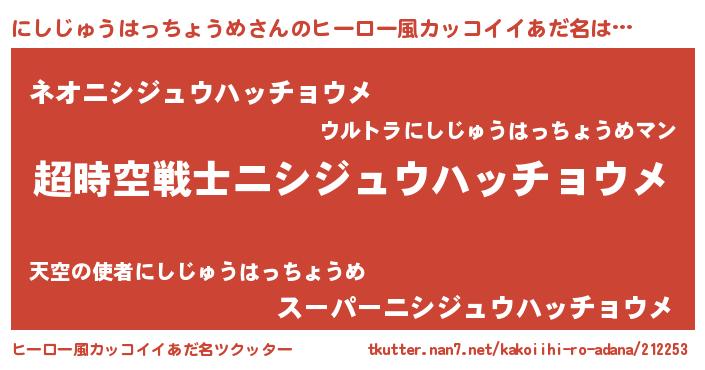 | 意味不明あだ名 | 『自称にしじゅうはっちょうめ』 |