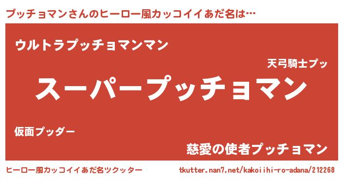 | 男性向けラノベタイトル風あだ名 | 『プッチョマンの憂鬱』 |