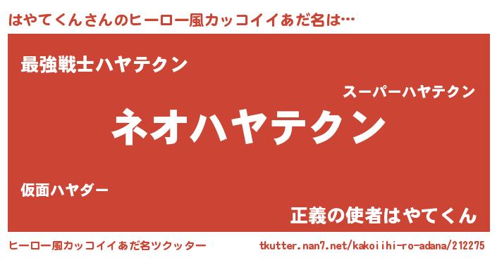 | 胡散臭い通販商品みたいなあだ名 | 『来世でも幸せになれる健康食品…その名も「はやてくん」』 |