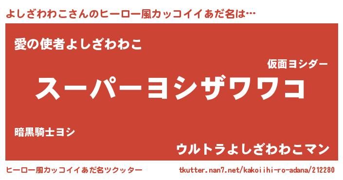 | 男性向けラノベタイトル風あだ名 | 『ヨシザワワコアートオンライン』 |
