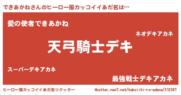 | 女子向けラノベタイトル風あだ名 | 『できあかね様がみてる』 |
