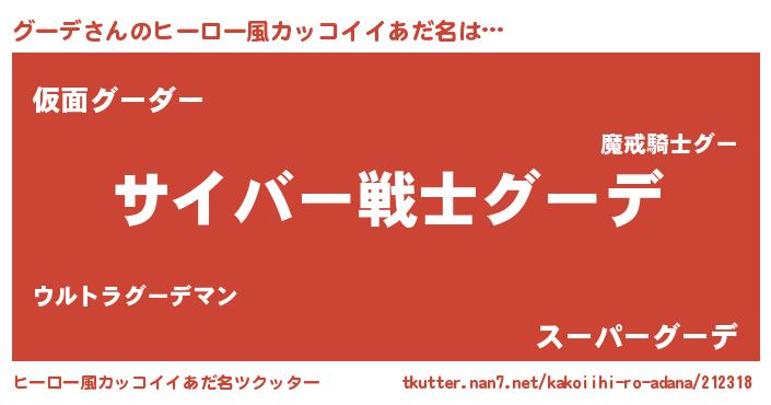 | 胡散臭い通販商品みたいなあだ名 | 『テレビで話題のアガリクス…その名も「グーデ」』 |
