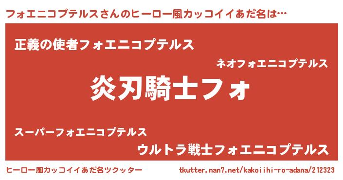 | 意味不明あだ名 | 『とにかく怪しいフォエニコプテルス』 |