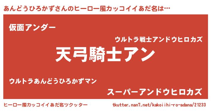 | 男性向けラノベタイトル風あだ名 | 『あんどうひろかずの嫁は女の子じゃないと思った?』 |