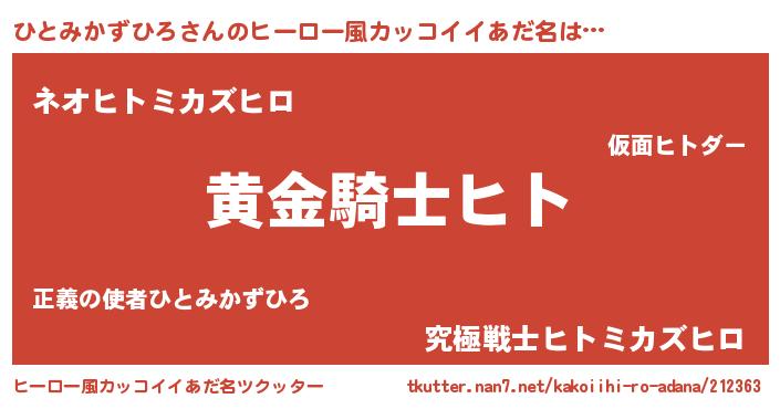 | 男性向けラノベタイトル風あだ名 | 『ダンジョンにひとみかずひろを求めるのは間違っているだろうか』 |