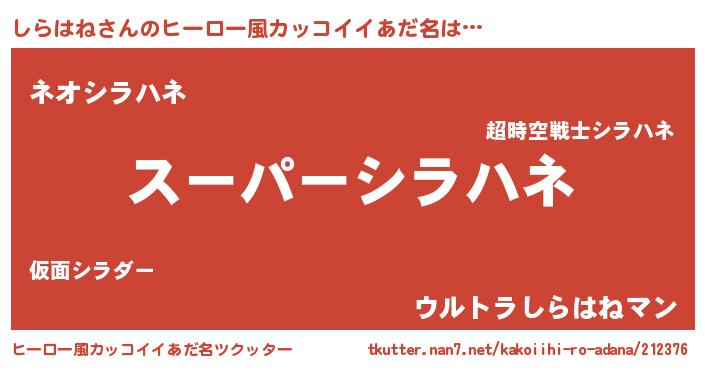 しらはねさんのヒーロー風カッコイイあだ名をツクッター!