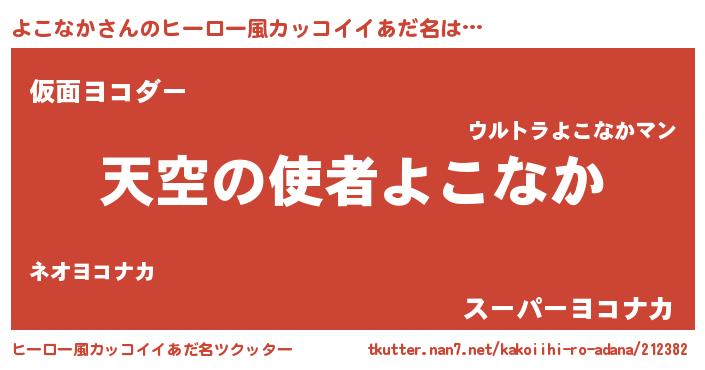 | 男性向けラノベタイトル風あだ名 | 『よこなかに滅ぼされるだけの簡単なお仕事です』 |