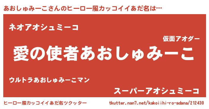 | 女子向けラノベタイトル風あだ名 | 『あおしゅみーこ恋絵巻』 |