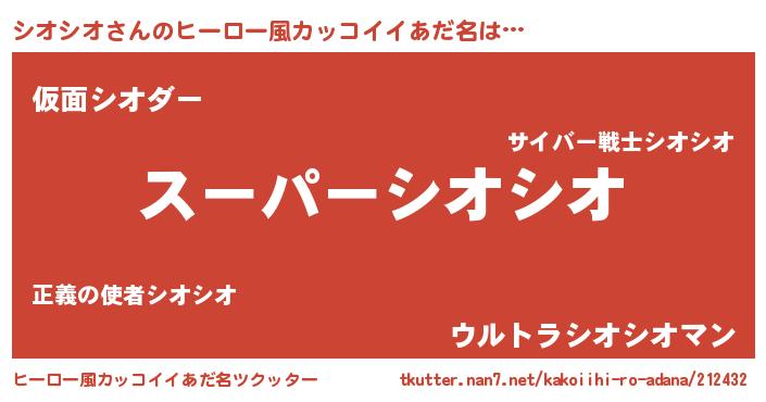 | 2回繰り返すあだ名 | 『シオシオ』『すーすー』『シシオオ』 |
