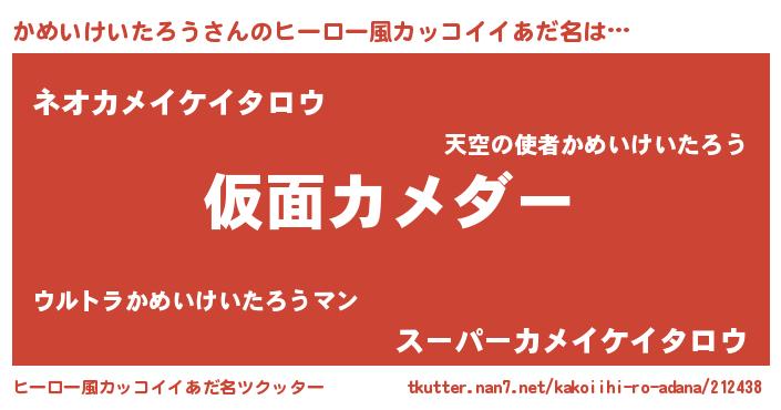 | ヘコむあだ名 | 『かめいけいたろう(笑)』『かめにゅー』 |