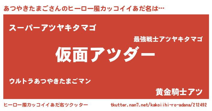 | 欧米人風あだ名 | 『ダレノガレあつやきたまご』 |