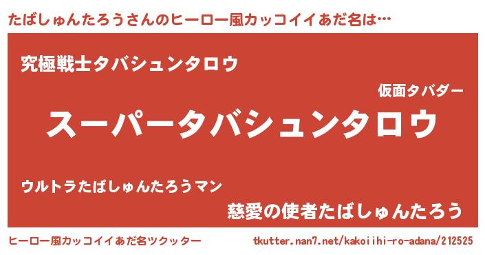 | 女子向けラノベタイトル風あだ名 | 『たばしゅんたろうの玉の輿計画!』 |