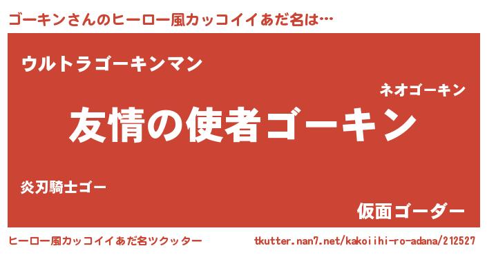 | 男性向けラノベタイトル風あだ名 | 『おまえをオタクにしてやるから、俺をゴーキンにしてくれ! 』 |