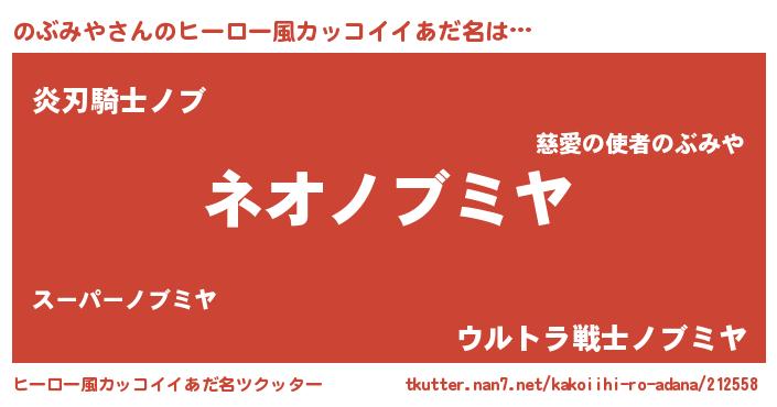| 男性向けラノベタイトル風あだ名 | 『のぶみやという概念が存在しない退屈な世界 』 |