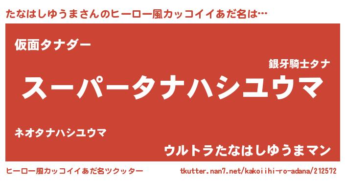 | 胡散臭い通販商品みたいなあだ名 | 『億万長者になれる霊験あらたかなお札…その名も「たなはしゆうま」』 |